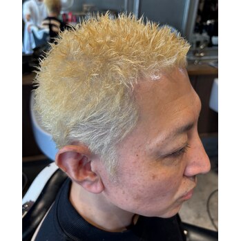 そこにブリーチを1回施し、イージーパーマ(ドリル)を当てています!